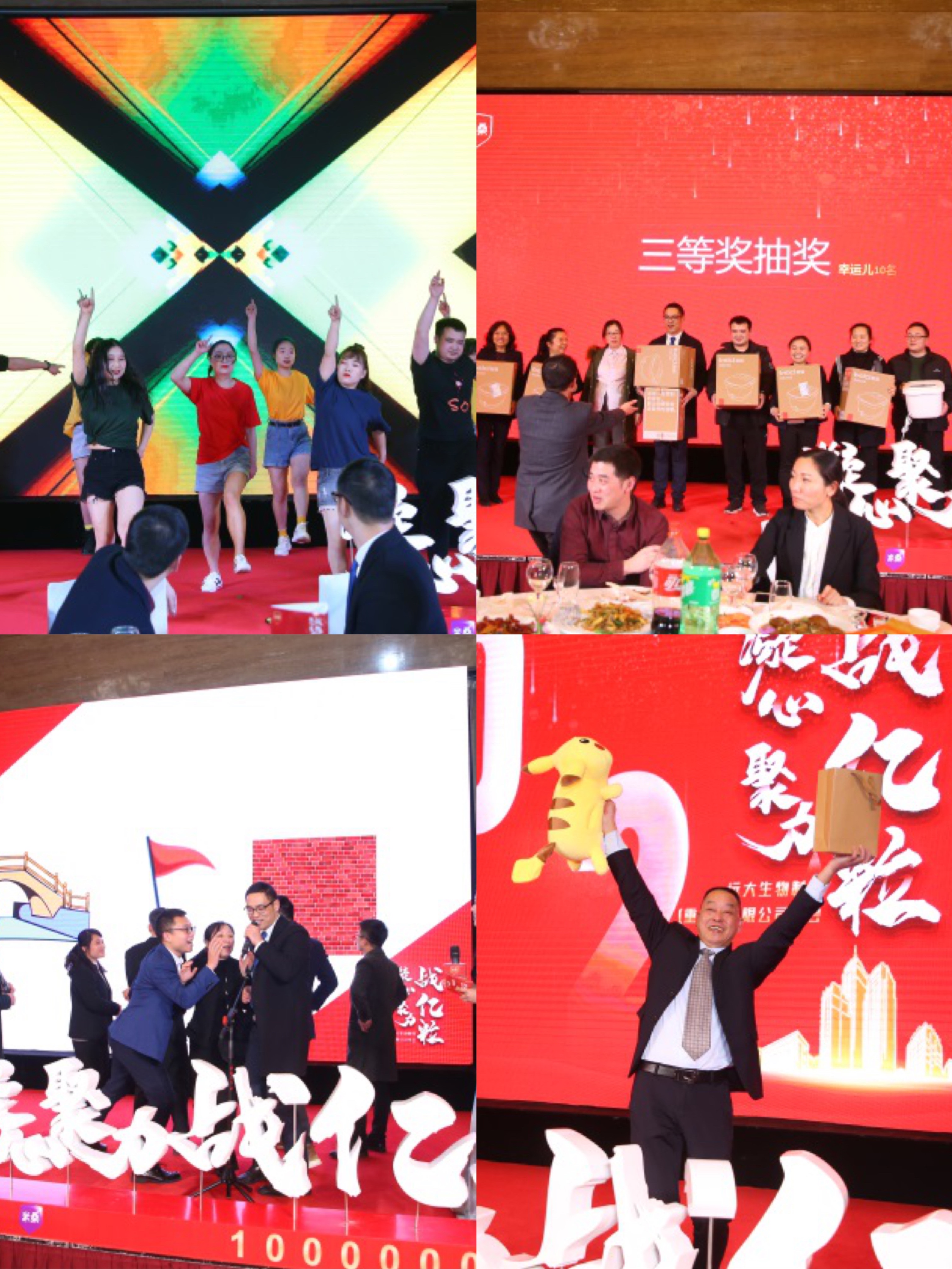 多才多艺的重远人精心准备、刻苦排练,给蘑菇视频官网版下载大全带来了视觉与听觉的盛宴,游戏环节让蘑菇视频官网版下载大全彼此间链接更加深入,抽奖环节更是让伙伴们澎湃。年会也在大家觥筹交错中渐入尾声。